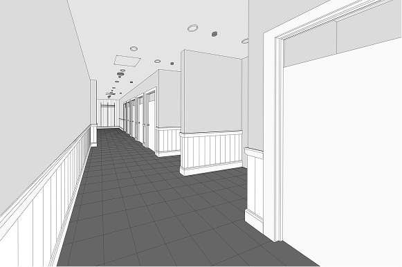 Due to structural irregularities in the scanned data, we had to develop custom modeling techniques to accurately match walls, ceiling angles, and store-front elements while maintaining clean geometry for future reuse.